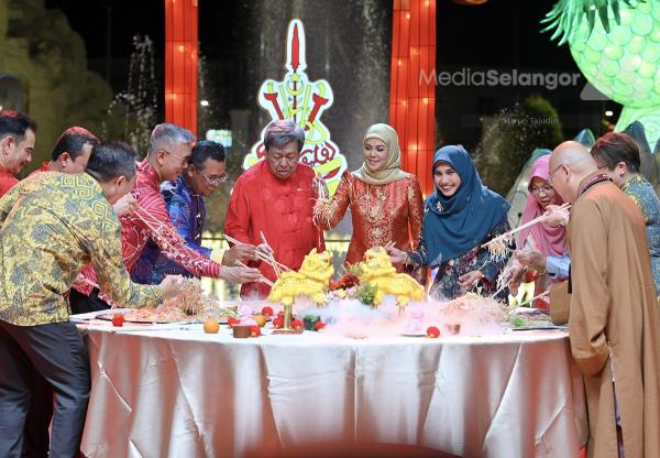 Baginda berdua kemudiannya berkenan menggaul Yee Sang sebagai gimik perasmian sambutan perayaan tersebut serta menonton pelbagai persembahan kebudayaan sambil bersantap.