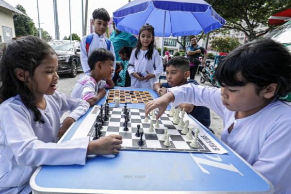 kanak-kanak bermain catur ketika Karnival Kembali Ke Sekolah di Dewan Lindungan PJS 6/1, Petaling Jaya pada 16 Februari 2025. Foto FIKRI YUSOF/MEDIA SELANGOR