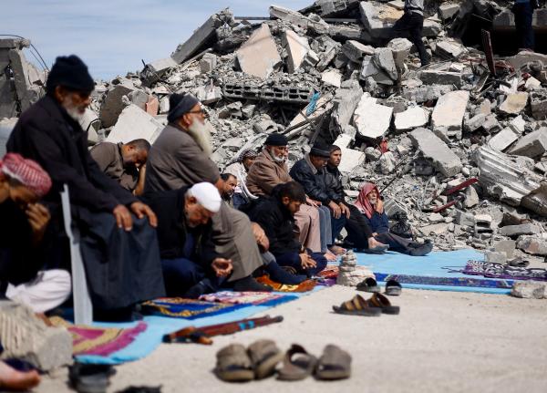 "Di sebalik timbunan puing ini, kami menunaikan ibadah, berdoa kepada Allah agar menerima amalan kami," kata Bilal Al-Lahham, seorang imam di Gaza City.