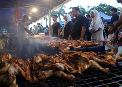 Orang ramai beratur untuk membeli ayam madu otai yang dijual dengan harga RM28 seekor di bazar Ramadan Bandar Tun Hussein Onn, Kajang pada 2 Mac 2025. Foto AHMAD ZAKKI JILAN/MEDIA SELANGOR