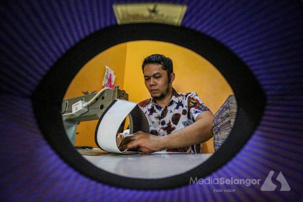 [caption id="attachment_689802" align="aligncenter" width="794"] Pekerja, Muhamad Niki Sarul, 20, teliti menjahit songkok.[/caption]