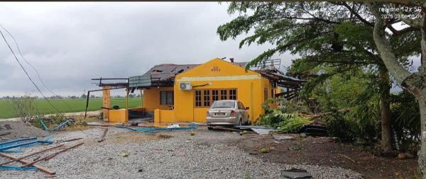 SHAH ALAM, 6 MAC: Beberapa kediaman dan gerai sekitar Parit 4, Sekinchan mengalami kerosakan akibat kejadian puting beliung sekitar jam 7.30 pagi tadi.