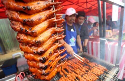 Wawan Suwendi menjual kepak ayam madu dengan harga RM2.50 di bazar Ramadan Puncak Jalil 3/10, Subang Jaya pada 6 Mac 2025. Foto AHMAD ZAKKI JILAN/MEDIA SELANGOR