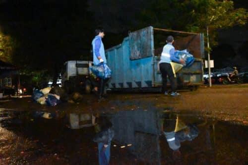 Petugas KDEB Waste Management (KDEBWM) membuang sampah ke dalam lori yang disediakan di bazaar Ramadan Seksyen 17, Shah Alam pada 10 Mac 2025. Foto NUR FATIHAH HAMIZI/MEDIA SELANGOR