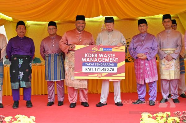 Zakat itu dikeluarkan KDEB Waste Management berjumlah RM1.17 juta serta Perbadanan Kemajuan Pertanian Selangor dan Kumpulan Semesta Sdn Bhd masing-masing bernilai RM1 juta.