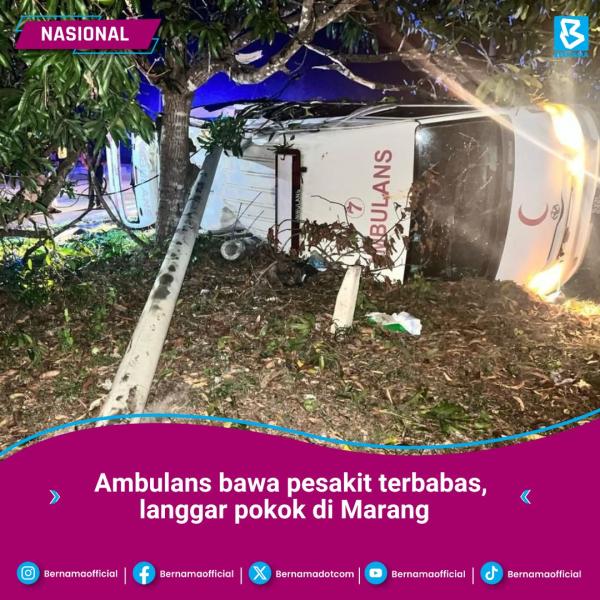 KUALA TERENGGANU, 23 MAC: Seorang pesakit dan petugas perubatan berdepan detik cemas apabila ambulans dinaiki mereka terbabas di Kilometer 49 Jalan Kuala Terengganu-Kuantan berhampiran Jambu Bongkok di Marang, tengah malam tadi.
