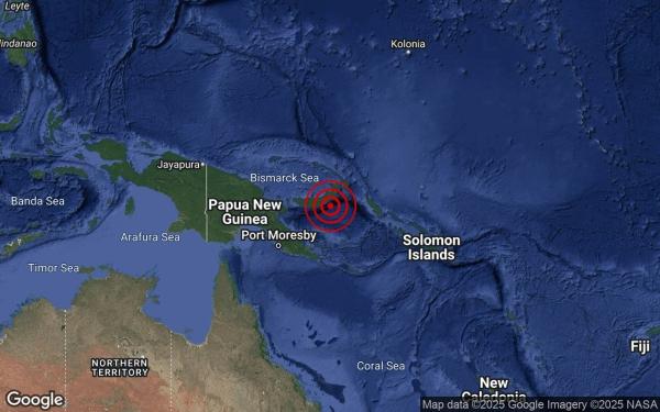 USGS dalam kenyataan ringkas memaklumkan gempa bumi itu berlaku pada kedalaman 10 kilometer (6 batu) dan berpusat kira-kira 194 kilometer (121 batu) dari bandar Kimbe.