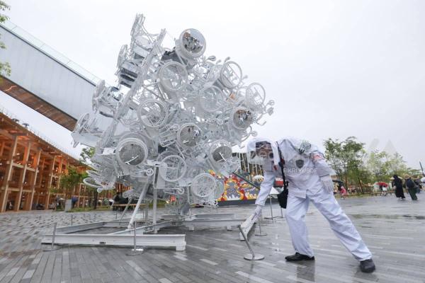 Salah satu karya seni yang menonjol ialah siri Hiwadrome yang dihasilkan artis Jepun kelahiran Osaka, Kazuhiko Hiwatashi ketika tinjauan di sekitar Ekspo Dunia Osaka 2025, Jepun pada 9 Mei 2025. Siri ini menggabungkan kerusi roda sebagai bahan seni dan alat mobiliti peribadi, menjadikannya simbol penting dalam perbincangan mengenai aksesibiliti dan seni inklusif. Foto FIKRI YUSOF/MEDIA SELANGOR