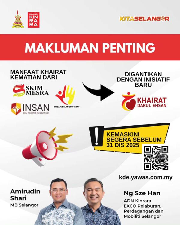 “Sistem akan daftar secara automatik sebagai penerima KDE. Jangan lepaskan peluang ini untuk lindungi orang tersayang,” katanya menerusi Facebook.