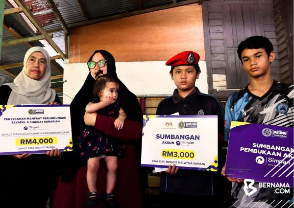 “Allahyarham juga telah membuka tiga akaun Simpan SSPN Plus di bawah Pakej Intan untuk tiga anaknya pada 31 Mac 2019 dan dengan komitmen RM30 sebulan untuk setiap akaun iaitu simpanan RM20 dan caruman takaful sebanyak RM10 melayakkan beliau sebagai pendeposit Simpan SSPN Plus yang dilindungi dengan manfaat perlindungan takaful (kematian akibat kemalangan) berjumlah RM60,000 untuk satu akaun dan jumlah keseluruhan RM180,000 untuk tiga akaun.