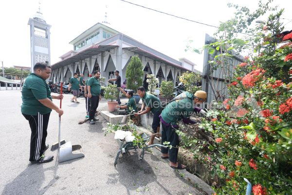 Peserta bergotong-royong ketika Program Kembara Masjid Selangor (KEMAS) 2025 di Masjis Kampung Salak Tinggi Sepang pada 22 Jun 2025. Foto NUR ADIBAH AHMAD IZAM/MEDIASELANGOR[/caption]