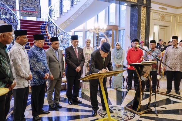 Premier Sarawak, Tan Sri Abang Johari Tun Openg, menyampaikan sembah ucapan pada Majlis Pengisytiharan Universiti Putra Malaysia (UPM) Sarawak yang berlangsung di Istana Alam Shah, Klang pada 30 Jun 2025. Foto BERNAMA[/caption]