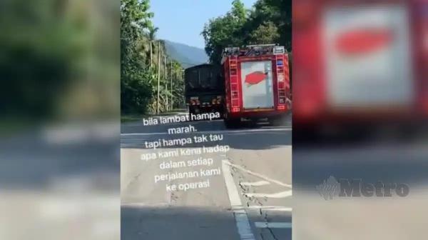 “Dalam rakaman itu, jentera bomba dilihat berusaha untuk memotong lori tersebut tetapi kenderaan itu seolah-olah tidak memberi laluan, sekali gus menimbulkan kebimbangan dalam kalangan masyarakat terhadap keselamatan dan keutamaan kenderaan penyelamat ketika menjalankan tugas kecemasan.