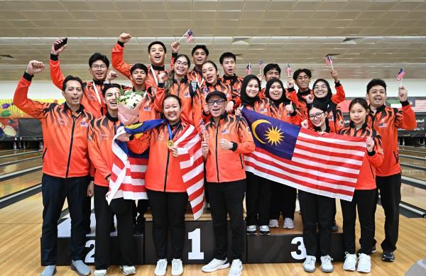 KUALA LUMPUR, 1 OGOS: Skuad boling remaja negara muncul juara keseluruhan Kejohanan Boling Remaja Asia ke-24 di Doha, Qatar selepas menambah tiga lagi pingat emas semalam.