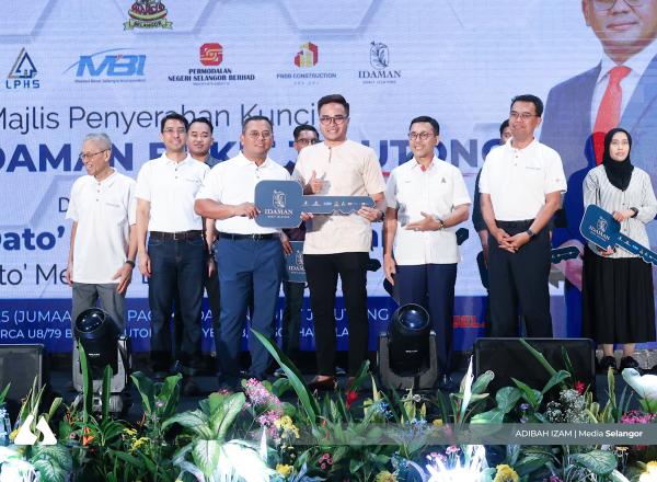 SHAH ALAM, 8 OGOS: Dato’ Menteri Besar Dato’ Seri Amirudin Shari hari ini menyerahkan kunci kepada lapan pemilik Rumah Idaman Bukit Jelutong yang dibangunkan Gagasan Nadi Cergas Bhd dengan kerjasama Permodalan Negeri Selangor Berhad (PNSB).