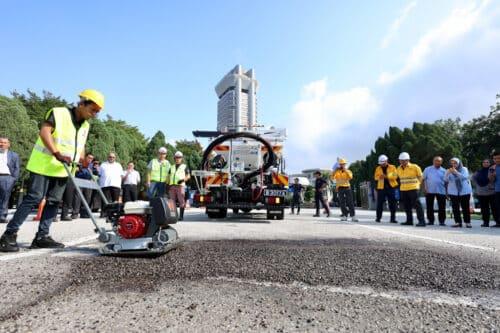 Izham berkata projek menggunakan jentera Jetpatcher dari United Kingdom itu akan mempercepatkan proses turapan tiga kali ganda selain mengurangkan tenaga kerja.