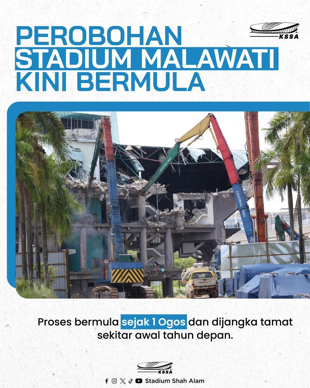 SHAH ALAM, 19 OGOS: Kerja perobohan Stadium Malawati di sini yang menjadi sebahagian projek pembangunan semula Kompleks Sukan Shah Alam (KSSA) telah bermula sejak 1 Ogos.