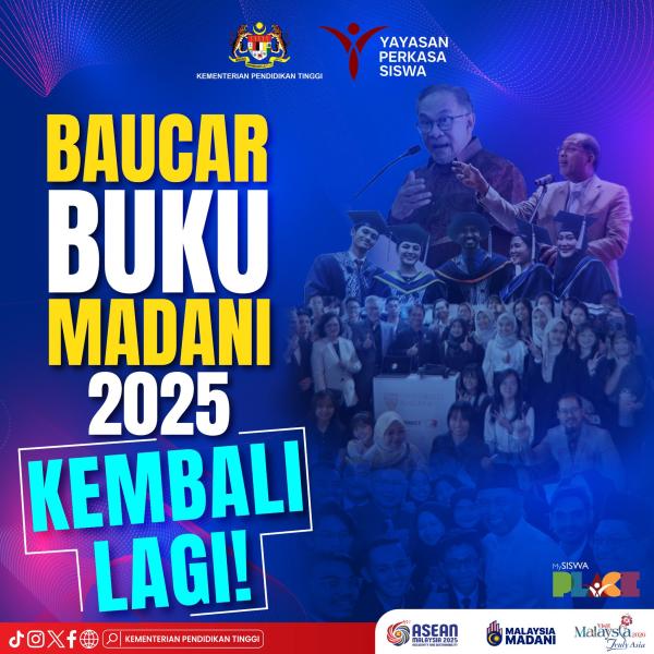 PUTRAJAYA, 27 OGOS: Inisiatif baucar buku MADANI bernilai RM100 kepada pelajar institusi pendidikan tinggi (IPT) akan dilaksanakan bermula esok hingga 12 Dis ini, yang bakal memanfaatkan 500,000 pelajar merangkumi universiti awam (UA), politeknik, kolej komuniti dan IPT swasta.