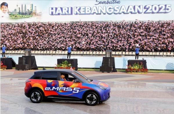 PUTRAJAYA, 31 OGOS: Jika tahun lepas kereta elektrik pertama Proton, e.MAS 7 membuat penampilan istimewa bersempena dengan Hari Kebangsaan, tahun ini sejarah berulang apabila Proton e.MAS 5 pula yang "menemui" ribuan pengunjung di Dataran Putrajaya hari ini.