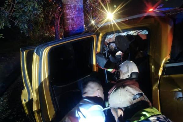 *"Kemalangan membabitkan sebuah pikap jenis Ford Ranger yang melanggar sebatang pokok.