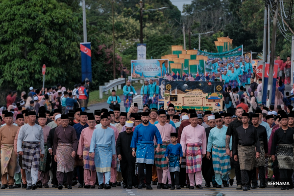KUALA LUMPUR, 5 SEPT: Ribuan umat Islam di seluruh negara hari ini menzahirkan rasa kasih dan rindu kepada junjungan besar Nabi Muhammad SAW dengan menyertai perarakan sambil mengalunkan selawat sempena sambutan Maulidur Rasul 1447H/2025M.