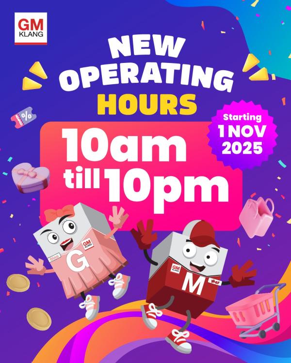 Bermula 1 November 2025, waktu operasi GM Klang akan dilanjutkan dari 10 pagi hingga 10 malam setiap hari.