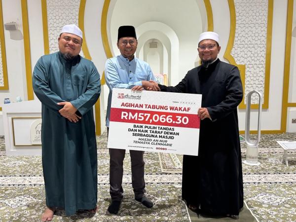 SHAH ALAM, 3 OKT: Masjid An-Nur Temasya Glenmarie menerima Tabung Wakaf Tunai berjumlah RM57,066 daripada Perbadanan Wakaf Selangor (Wakaf Selangor) baru-baru ini.