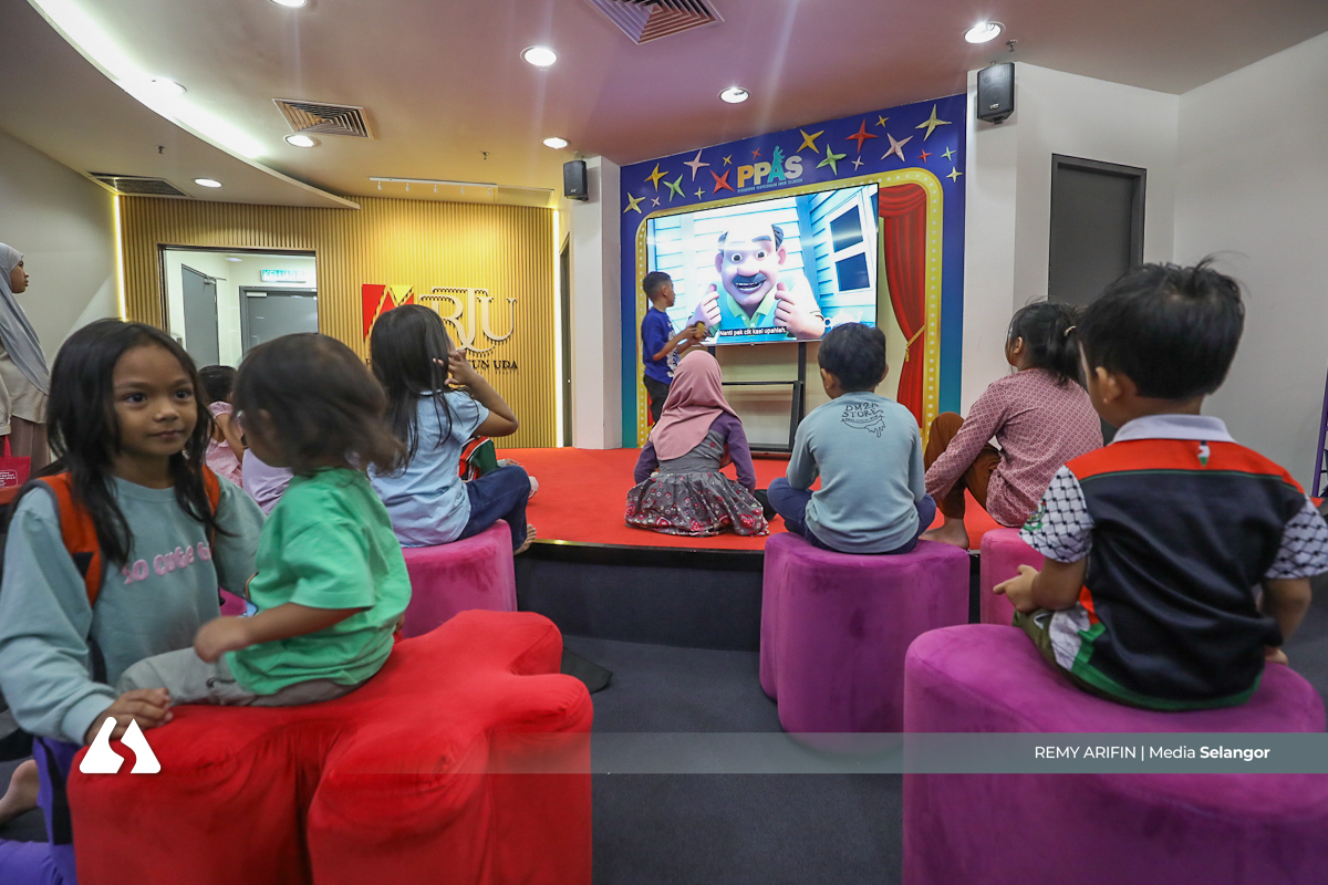 Tayangan cerita animasi berunsur kisah teladan di layar besar Perpustakaan Raja Tun Uda berjaya menarik perhatian sekumpulan pengunjung cilik