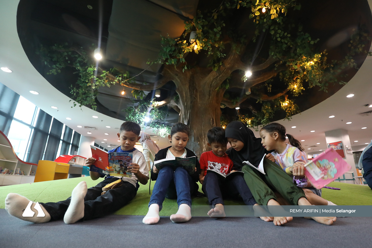 Rimbunan pokok di aras bawah Perpustakaan Raja Tun Uda menjadi sudut tenang bagi sekumpulan kanak-kanak menikmati bacaan