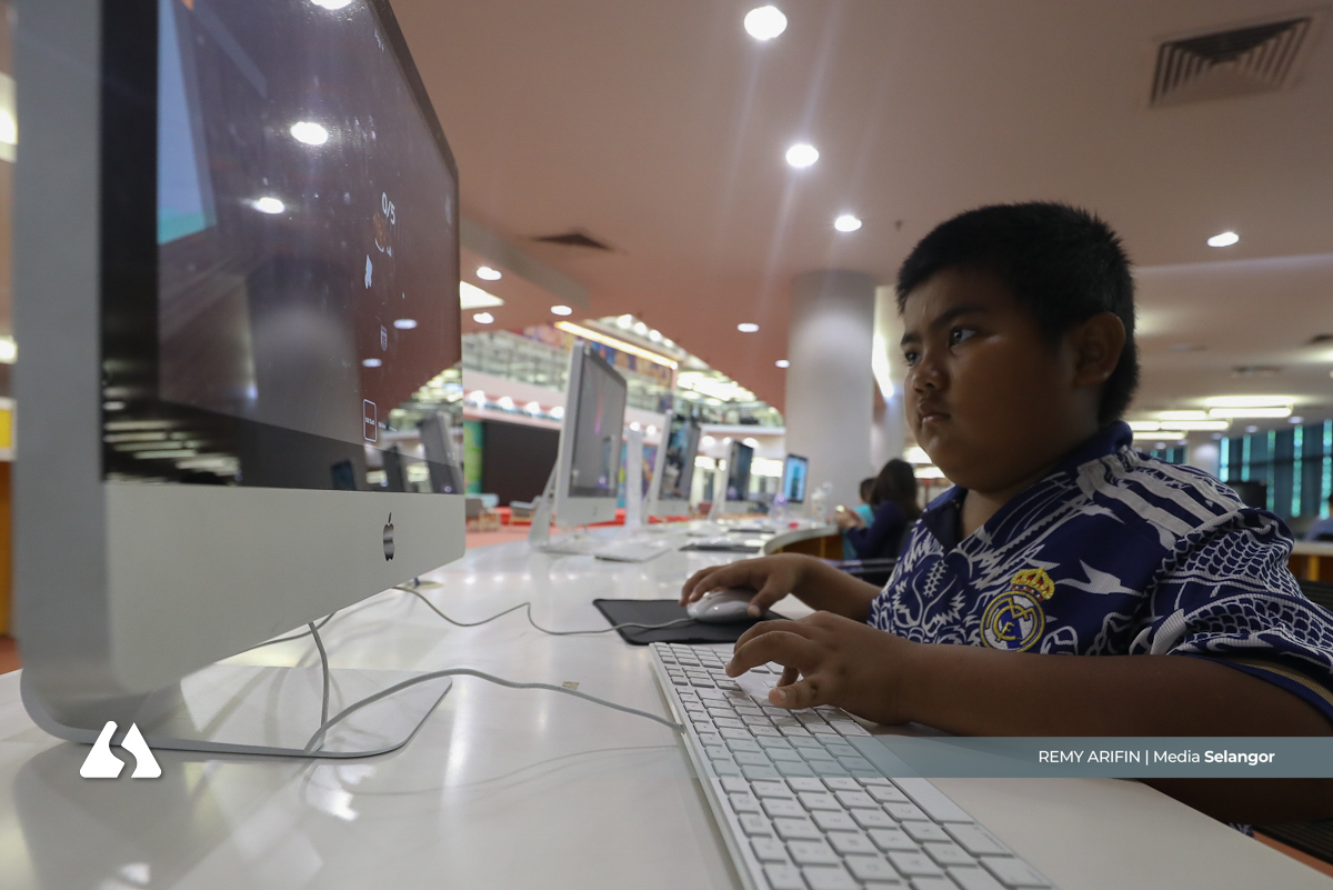 Kanak-kanak memanfaatkan kemudahan komputer di Perpustakaan Raja Tun Uda bagi mengakses bahan pembelajaran dan permainan interaktif
