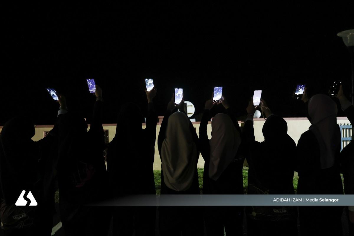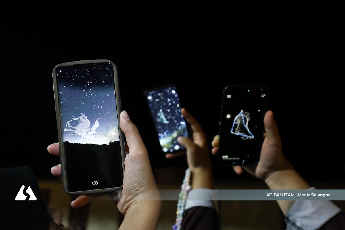 Peserta mencuba aplikasi skyview lite ketika Stargazing Mobile astrophotography anjuran SABDA di Balai Cerap Sungai Lang Sabak Bernam.