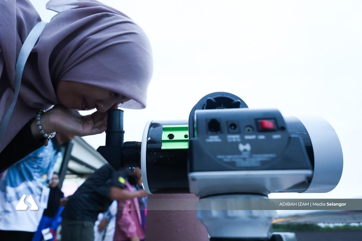 Peserta mencuba teleskop yang disediakan ketika Stargazing Mobile astrophotography anjuran SABDA di Balai Cerap Sungai Lang Sabak Bernam.