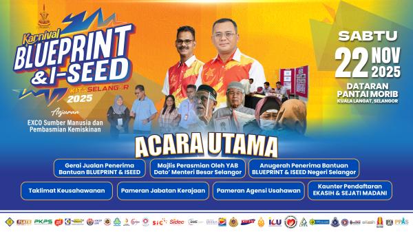 SHAH ALAM, 11 NOV: Kerajaan Negeri meneruskan komitmen memperkasa ekonomi rakyat menerusi penganjuran Karnival Blueprint & i-SEED #KitaSelangor 2025 di Dataran Pantai Morib, Kuala Langat pada 22 November ini.