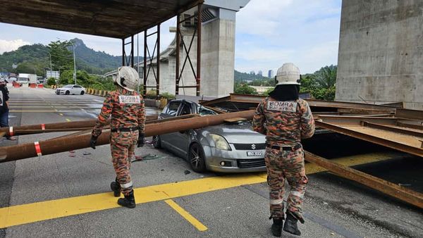 Terdahulu, seorang pemandu wanita nyaris maut selepas kereta yang dipandunya dihempap tiang perancah projek pembinaan projek ECRL di MRR2 Batu Caves berdekatan tol Gombak, di sini hari ini.
