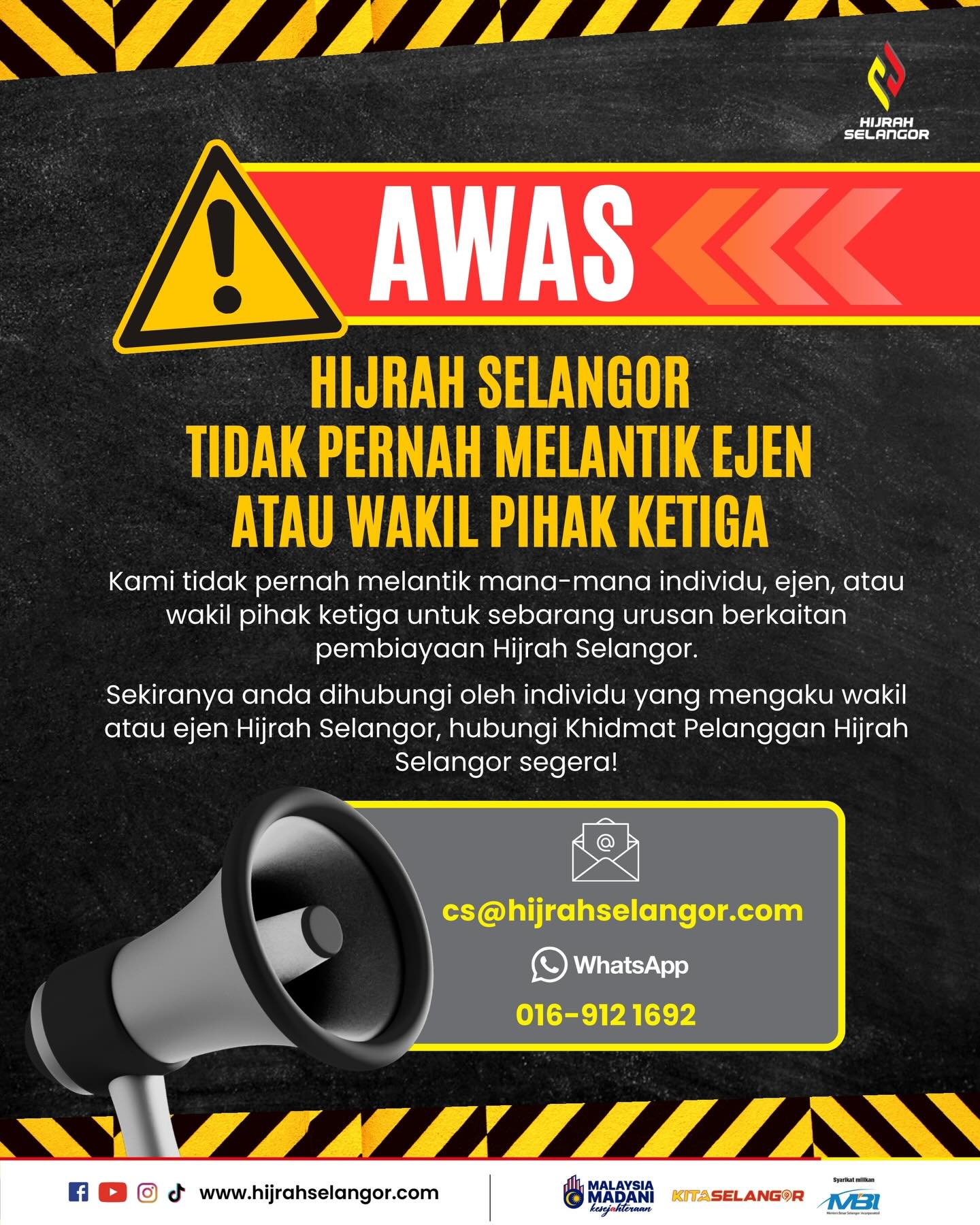Agensi itu mengingatkan orang ramai supaya berwaspada terhadap taktik penipuan atau individu yang menyamar sebagai wakil Hijrah Selangor.