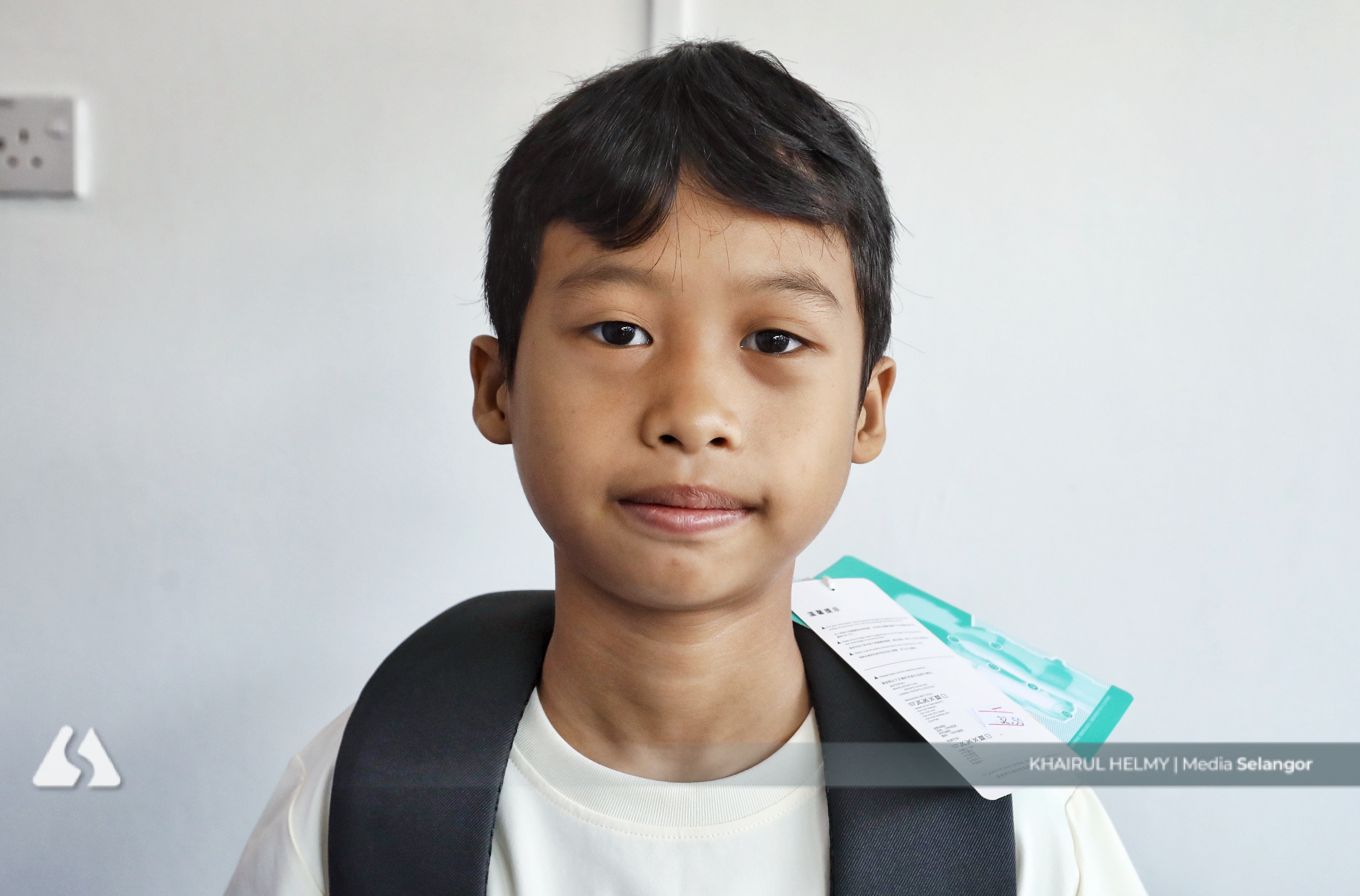 Penerima Hariz Aqil Hafiz, 11, berkata dia seronok menerima bantuan berkenaan memandangkan kasut sekolah yang diguna kini sudah koyak dan dapat digantikan dengan kasut baharu.
