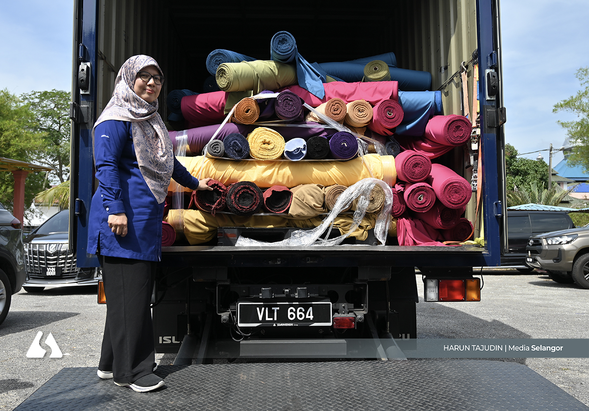 Wakil rakyatnya Anfaal Saari berkata berkata kain tersebut akan dijahit menjadi pakaian lelaki dan wanita dengan menggunakan khidmat sukarelawan serta petugas Balai JPKK Kampung Melayu Batu 16, di sini yang berkemahiran dalam bidang jahitan.