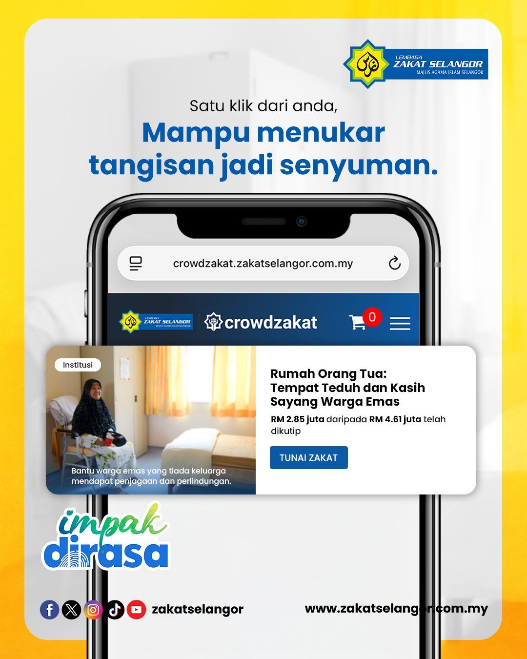 “Ayuh santuni mereka seperti ibu bapa kita sendiri. Sumbangan zakat anda amat bermakna bagi memastikan mereka terus mendapat penjagaan, perlindungan dan kasih sayang yang sewajarnya,” katanya menerusi hantaran di Facebook.