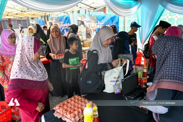 Jualan murah itu menawarkan ayam seekor (RM10), daging pejal (RM10/pek), telur (RM10 sepapan), ikan kembung (RM6/pek), minyak masak dua kg (RM10) dan beras lima kg (RM12).