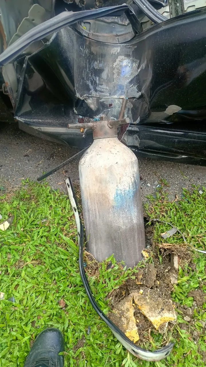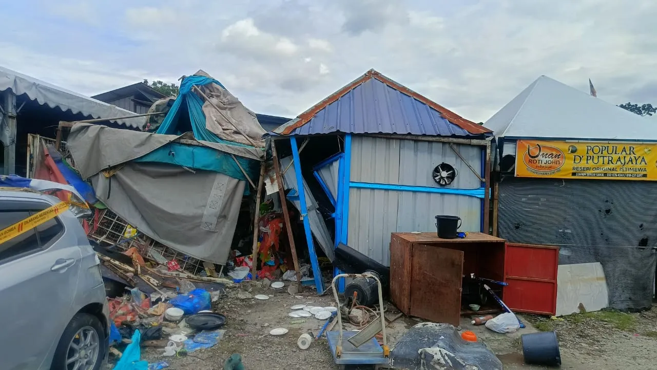 KUALA LUMPUR, 2 JAN: Tiga kenderaan dan dua gerai rosak selepas sebuah silinder gas helium meletup di Medan Selera Sungai Ramal, Kajang tengah hari tadi.