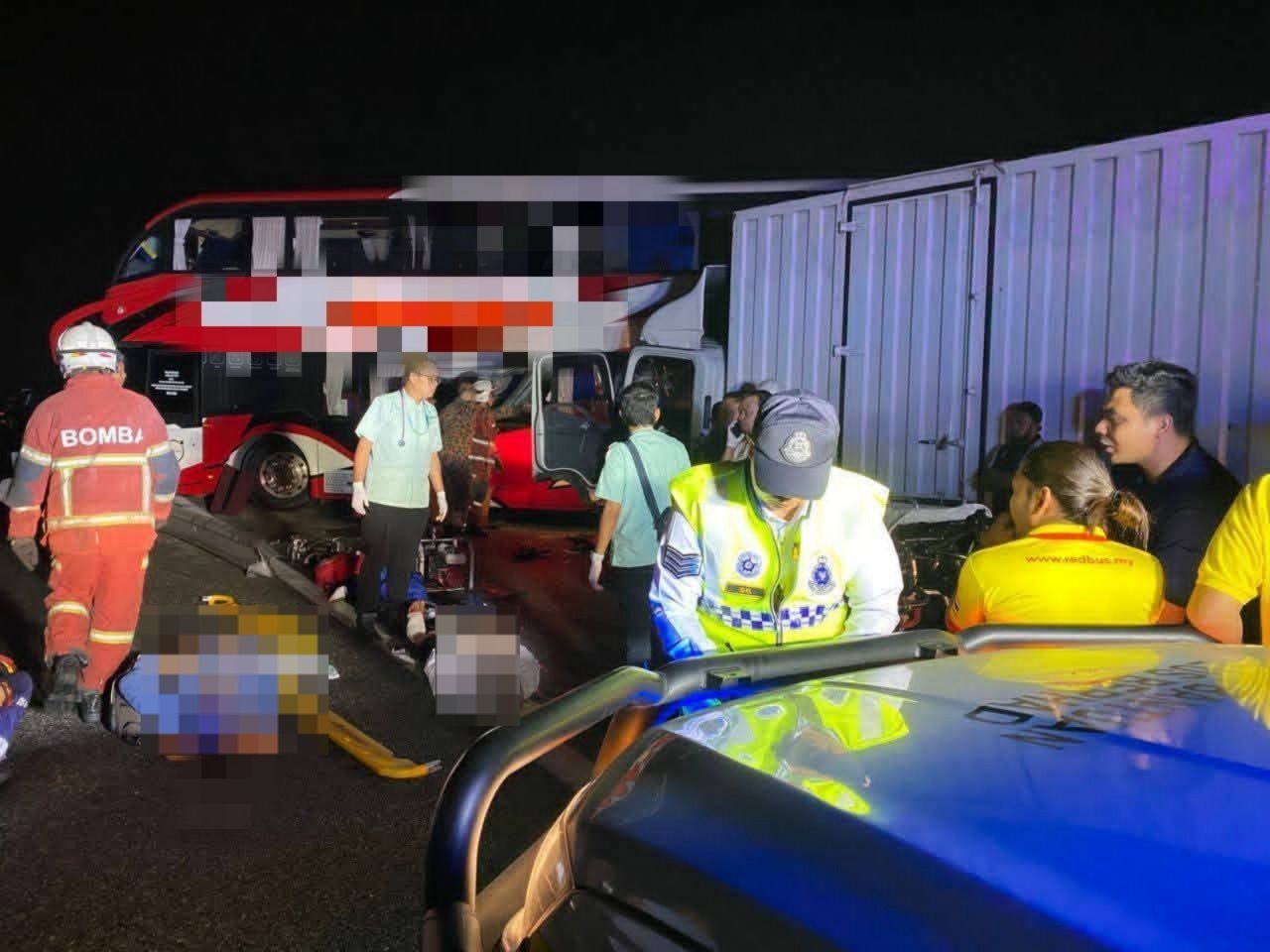 Operasi menyelamat mengambil masa hampir tiga jam apabila pihak bomba berdepan kesukaran mengeluarkan mangsa terakhir akibat struktur pembahagi jalan yang menghimpit kaki mangsa.
