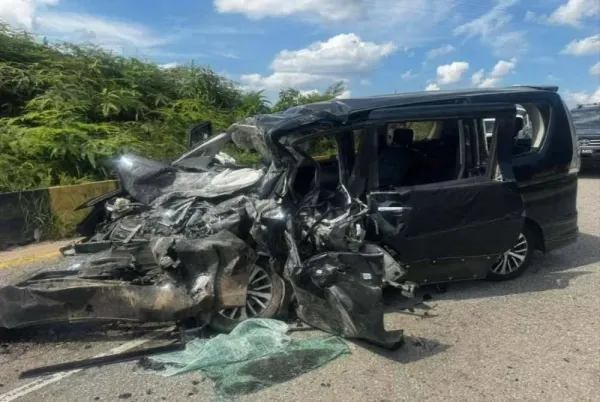 Komander Operasi Jabatan Bomba dan Penyelamat Malaysia (JBPM) PBK I Che Razak Harun berkata kemalangan membabitkan sebuah kenderaan pelbagai guna (MPV) jenis Nissan Serena yang dinaiki empat lelaki, manakala seorang lelaki dan seorang wanita pula menaiki kenderaan van jenis Toyota Hiace.