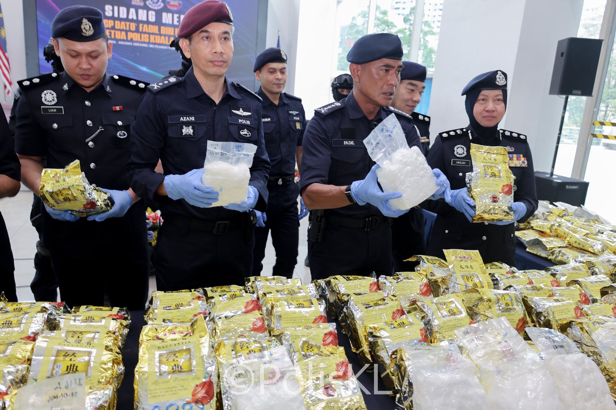 Ketua Polis Kuala Lumpur Datuk Fadil Marsus berkata empat lelaki berusia 23 hingga 32 tahun turut ditahan dalam serbuan berkenaan dan 250 bungkusan plastik teh berisi dadah disyaki jenis syabu seberat 261 kilogram dianggarkan bernilai RM13 juta dirampas.