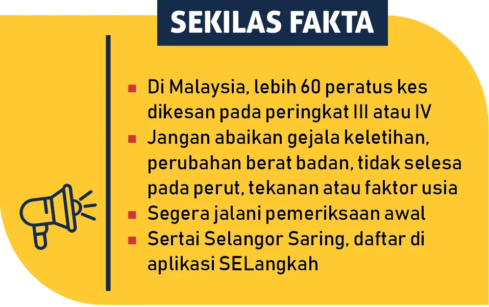 “Sel barah boleh membesar secara perlahan atau tanpa gejala sehingga ia mencapai tahap yang lebih agresif dan mula menyebar (metastasis). Oleh itu, ramai pesakit hanya mendapatkan pemeriksaan apabila simptom menjadi serius atau mengganggu kualiti hidup,” katanya kepada Media Selangor.