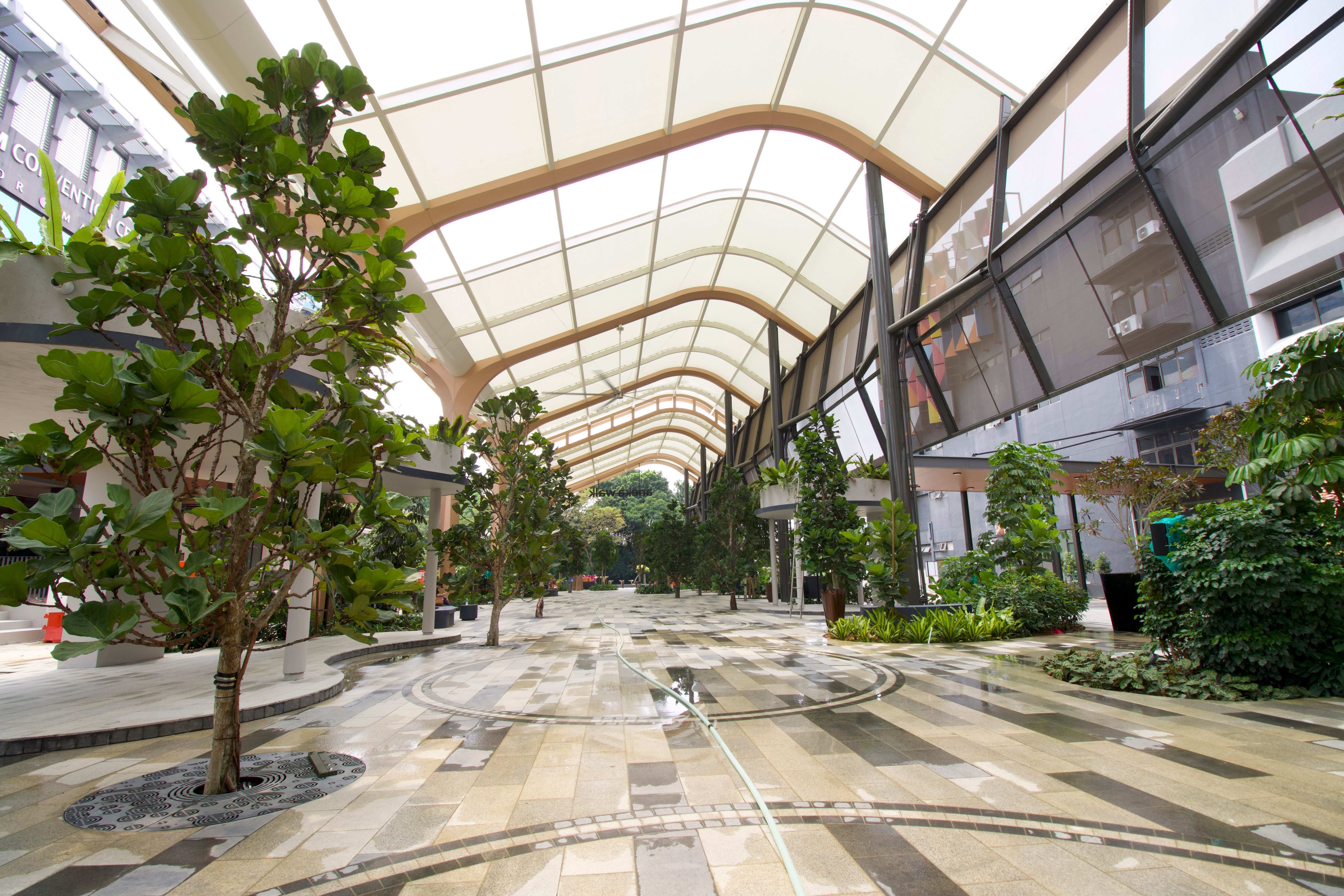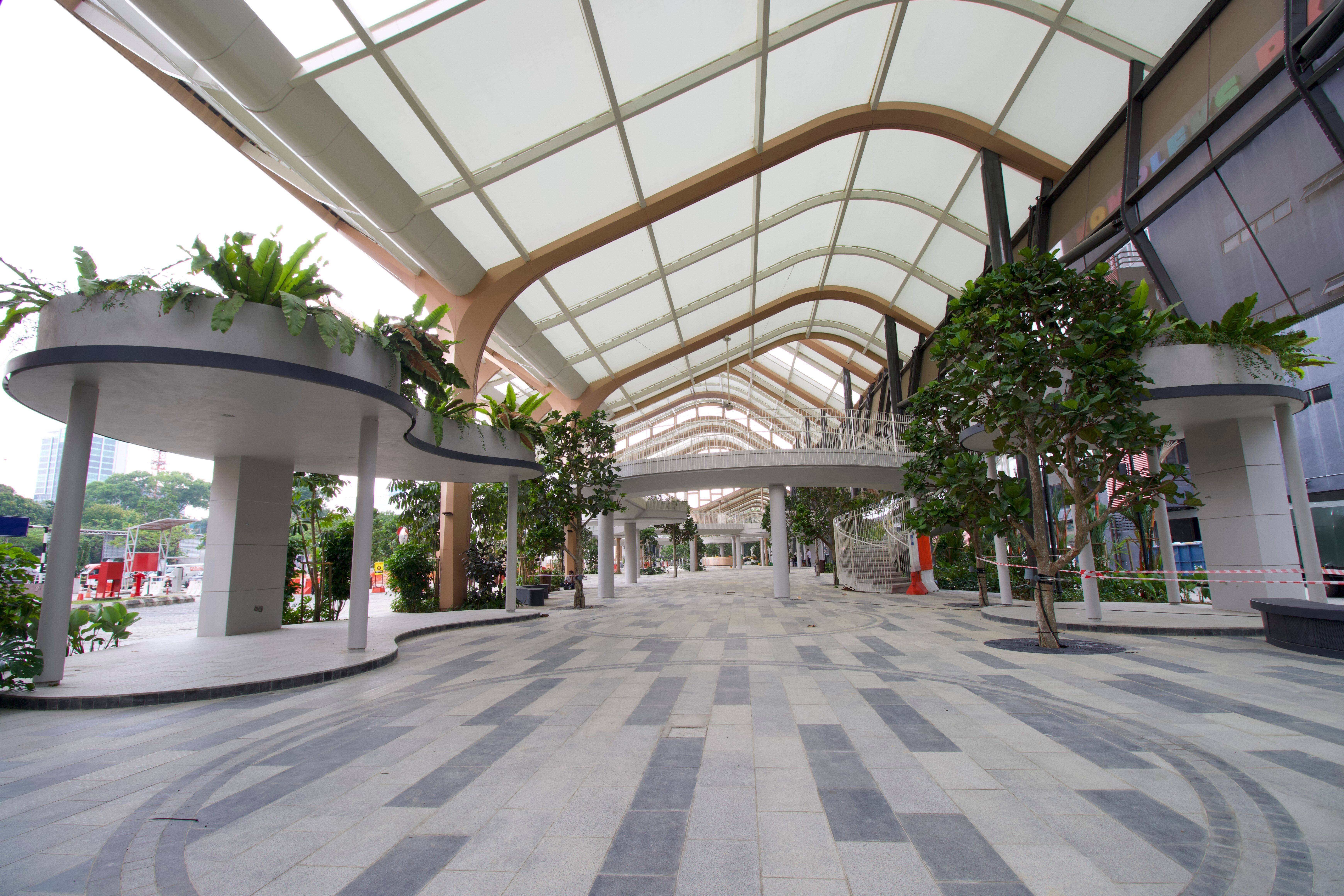 Binaan laluan pejalan kaki mesra pengguna serta sambungan berbumbung memastikan keselesaan pengunjung sepanjang tahun.