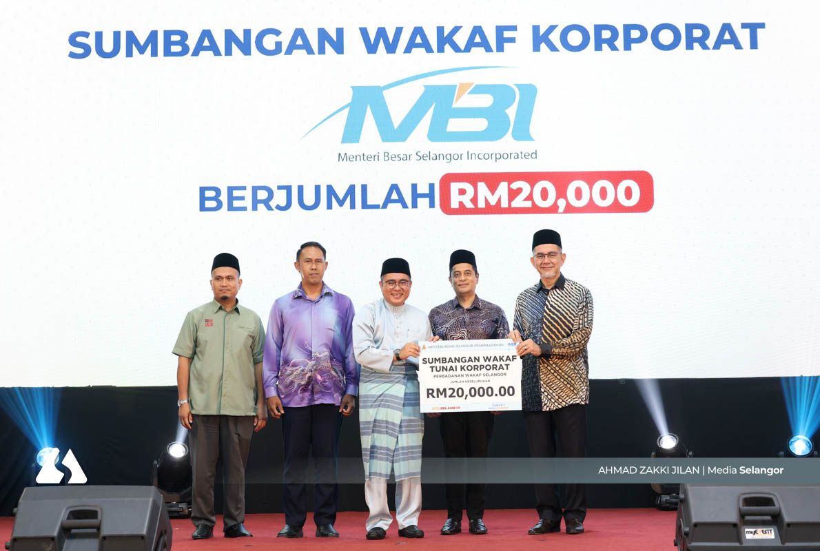 Majlis turut menyaksikan penyerahan simbolik cek cura Wakaf Tunai oleh 12 syarikat korporat kepada PWS dengan jumlah keseluruhan RM400,000 sebagai tanda sokongan sektor korporat terhadap pengukuhan ekosistem wakaf di Selangor.