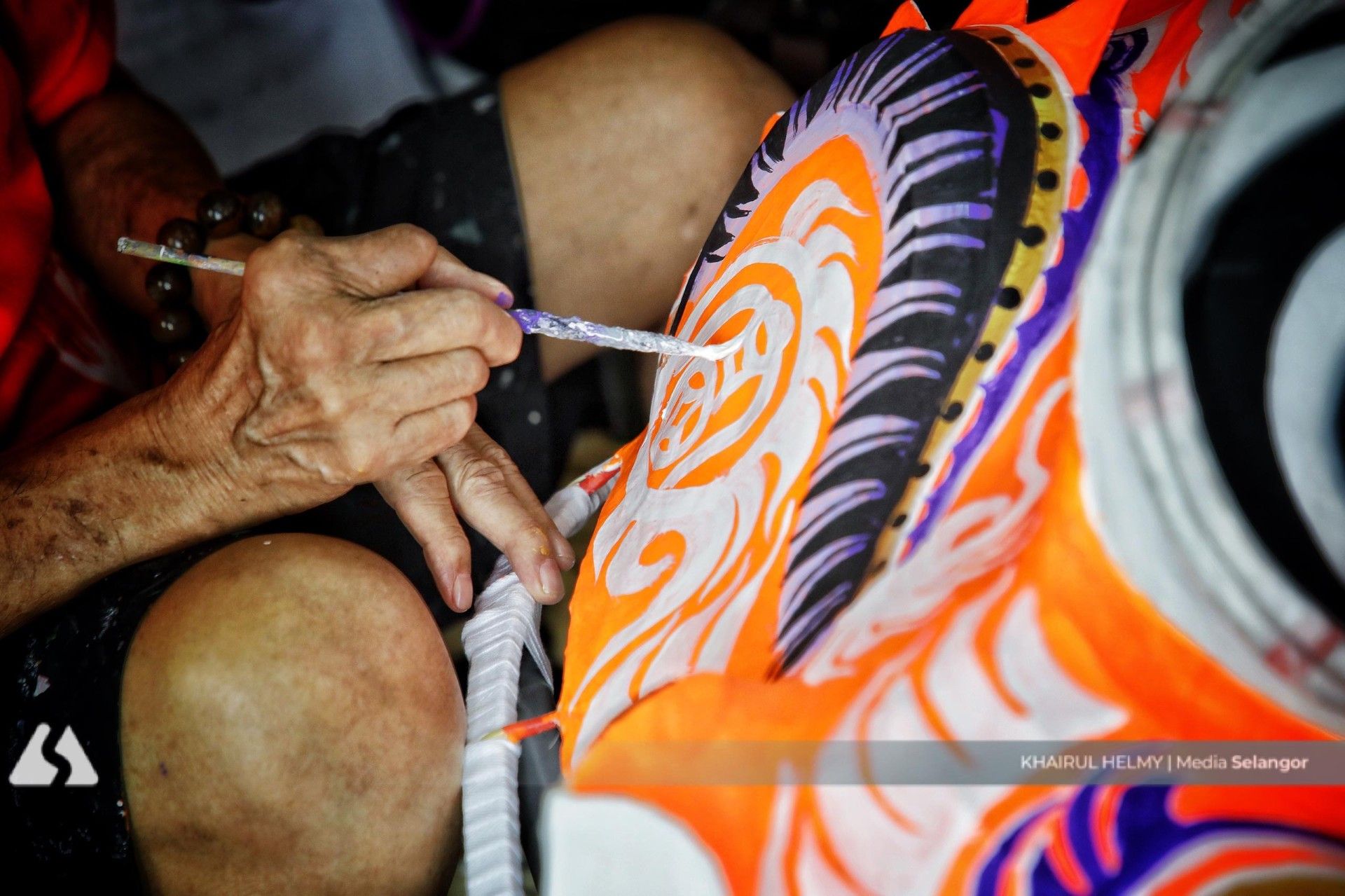 Proses mewarna kepala singa dilakukan mengikut tempahan pelanggan. Setiap langkah mencerminkan ketelitian, pengalaman dan warisan di Lo Fo Chi Enteprise, Kepong.