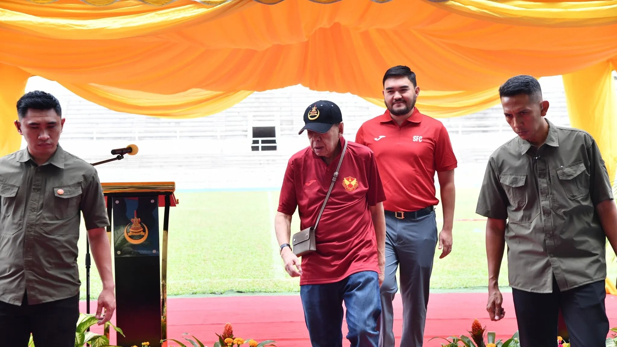 Duli Yang Teramat Mulia Raja Muda Selangor Tengku Amir Shah selaku penaung Selangor FC mengiringi Duli Yang Maha Mulia (DYMM) Sultan Selangor Sultan Sharafuddin Idris Shah Alhaj pada pelancaran buku Gemilang: Sejarah Perjalanan Bola Sepak Selangor di Stadium Merdeka. Foto Facebook MBSJ