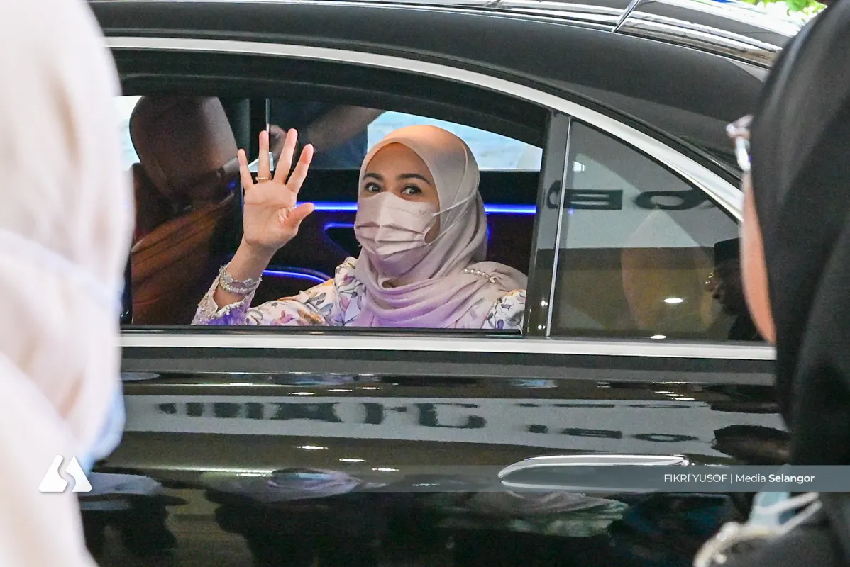 Keberangkatan Baginda disambut Pengarah Hospital Shah Alam, Dr Ruzita Othman; Naib Canselor Universiti Teknologi Mara (UiTM), Prof Datuk Dr Shahrin Sahib @ Sahibuddin serta Timbalan Datuk Bandar Shah Alam, Safriah Md Adzhar.