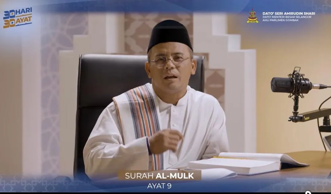 Terdahulu, ayat kesembilan Surah al-Mulk dibacakan Dato’ Seri Amirudin Shari dengan bimbingan Pensyarah Pusat Kajian al-Quran dan al-Sunnah, Fakulti Pengajian Islam, Universiti Kebangsaan Malaysia (UKM), Dr Ahmad Fakhrurrazi Mohammed Zabidi.
